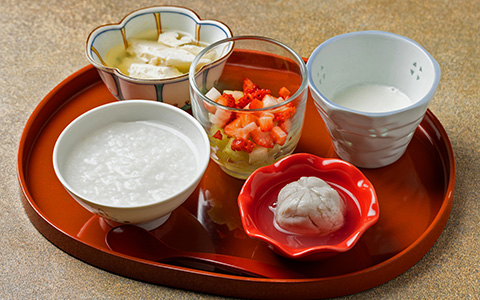 おかゆを白米に変更することも可能です。 ※ご予約の際、「備考欄」にその旨をご入力下さい。