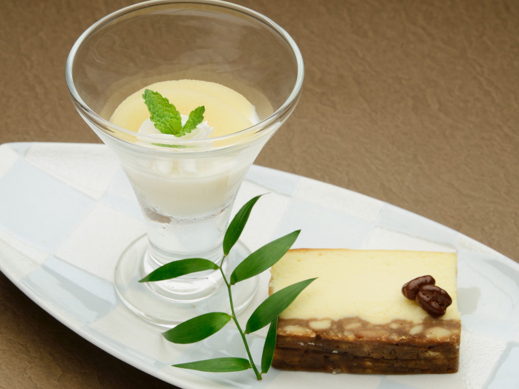 2.洋菓子 ティラミス風チーズケーキと桃のムース