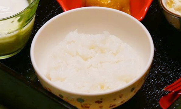 子供たちはまた長男と次男用(離乳食)にお食事が分けられていて、離乳食の方は夜と同じ「白米変更」。